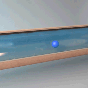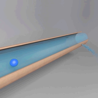 The AQUAPEA is drawn to the location of the leak by the flow of the escaping water.