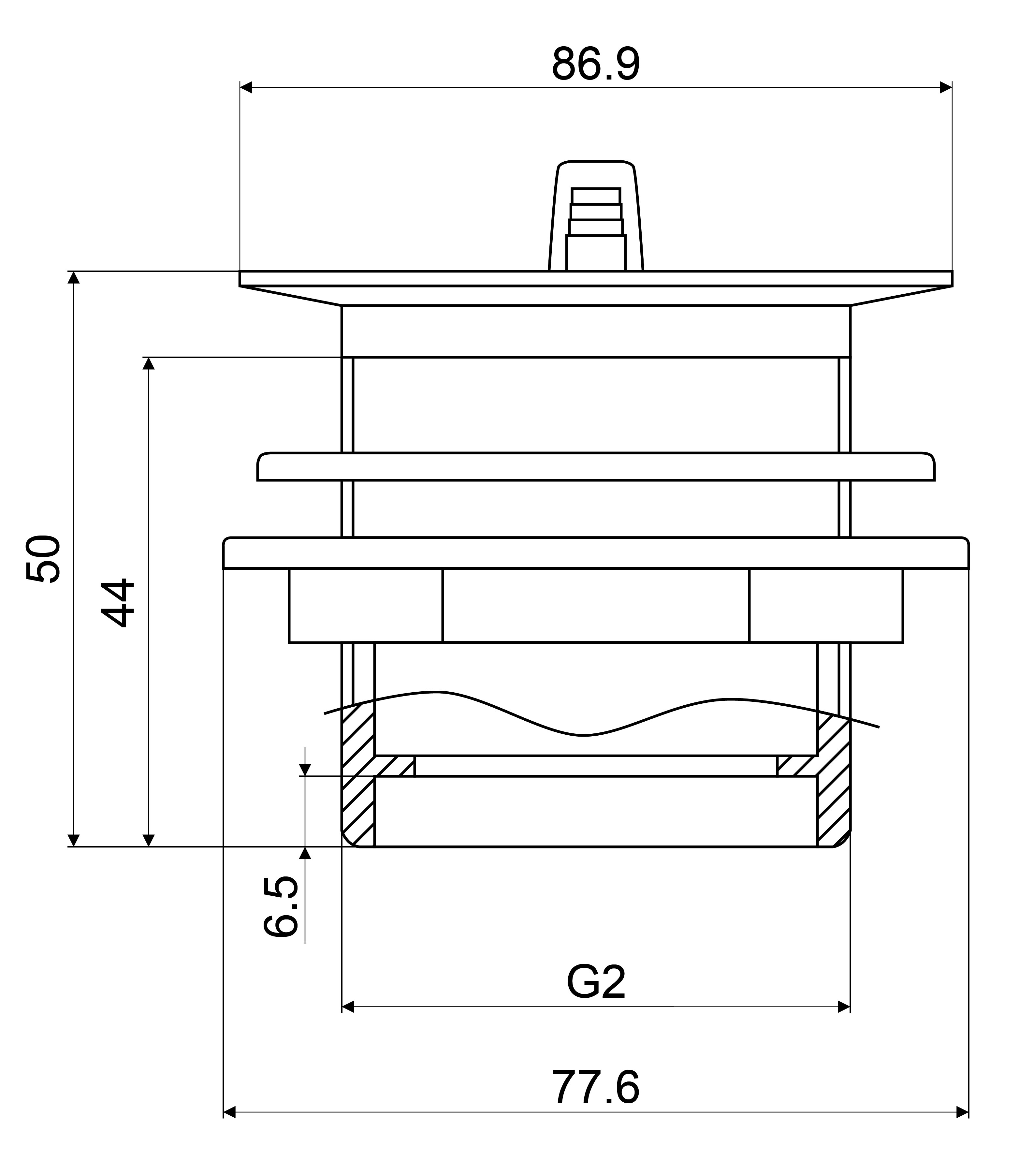 Plug & Waste With Black Rubber Plug 50mm x 50mm Long Chrome | Galvins Plumbing Supplies