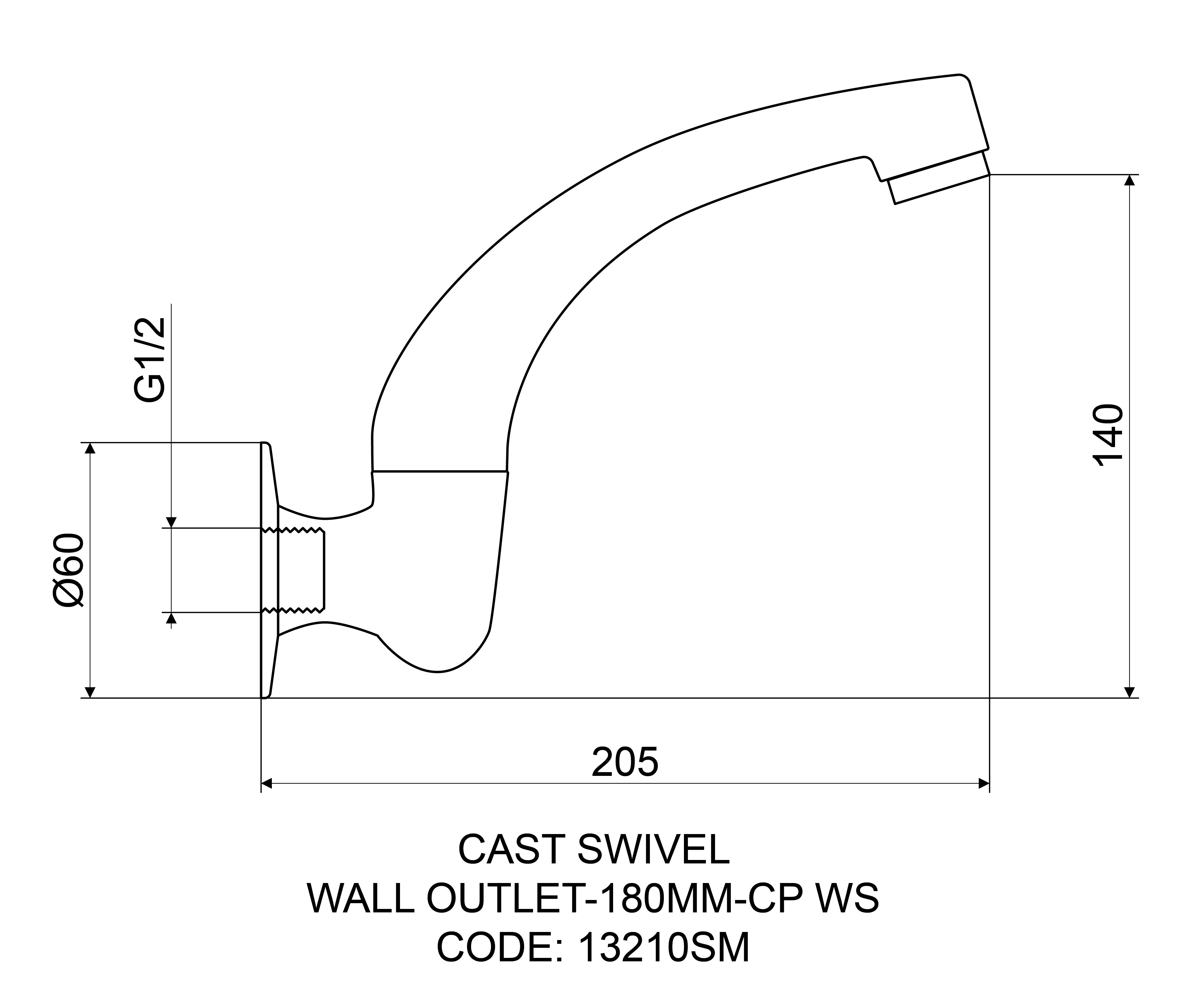 Specification sheet 1 - Economy Cast Swivel Wall Mounted Outlet 180mm Chrome