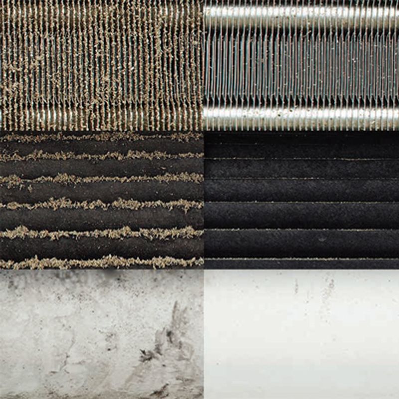 Reduces dust and greasy dirt from collecting in the air conditioner. Above is a simulation with & without a dual barrier over 10 years.